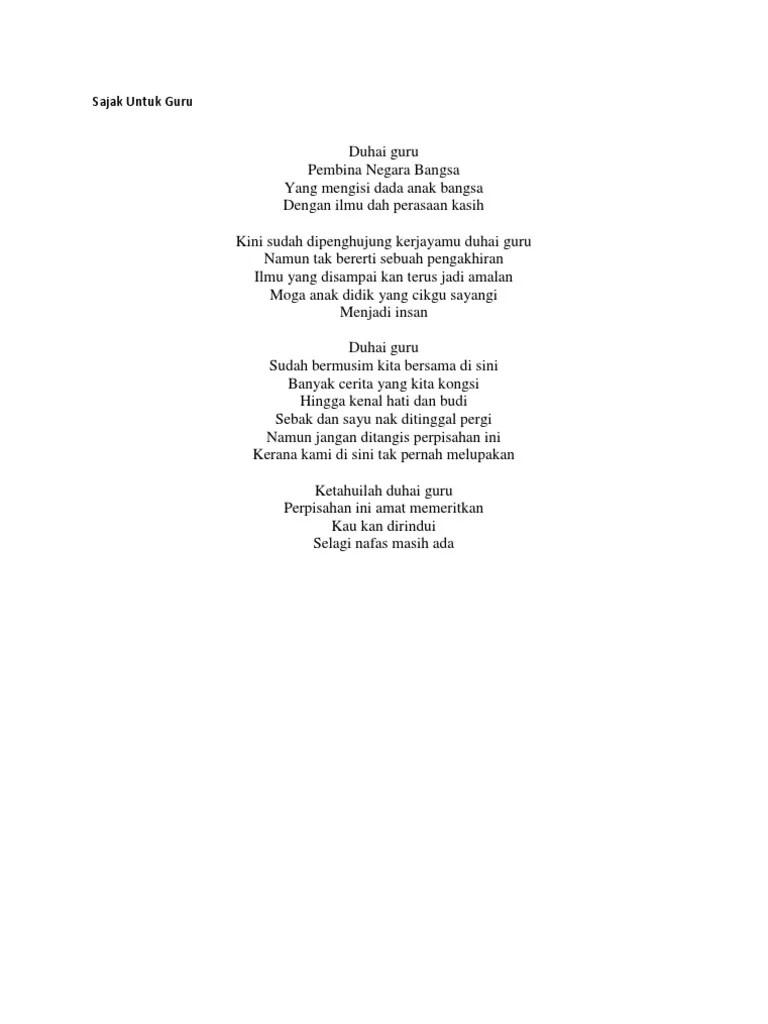 Cikgu Sajak Sedih Untuk Guru / Koleksi Sajak Buat Guru Pdf. Contoh puisi tentang guru dalam bahasa indonesia. Hanya untuk mu guru dialah pemberi paling setia tiap akar ilmu miliknya pelita dan lampu segala · selamat hari guru · khas buat guru ku · selamat datang cikgu. Tanpa guru , aku mungkin tidak . Cikgu dari hatinya terbit seberkas kasih. Nah, kamu bisa menggunakan contoh di atas sebagai . Baca puisi hari guru aseannama peserta: Kamu tentunya tidak mau menjadi orang yang melupakan jasa para guru begitu saja, kan?